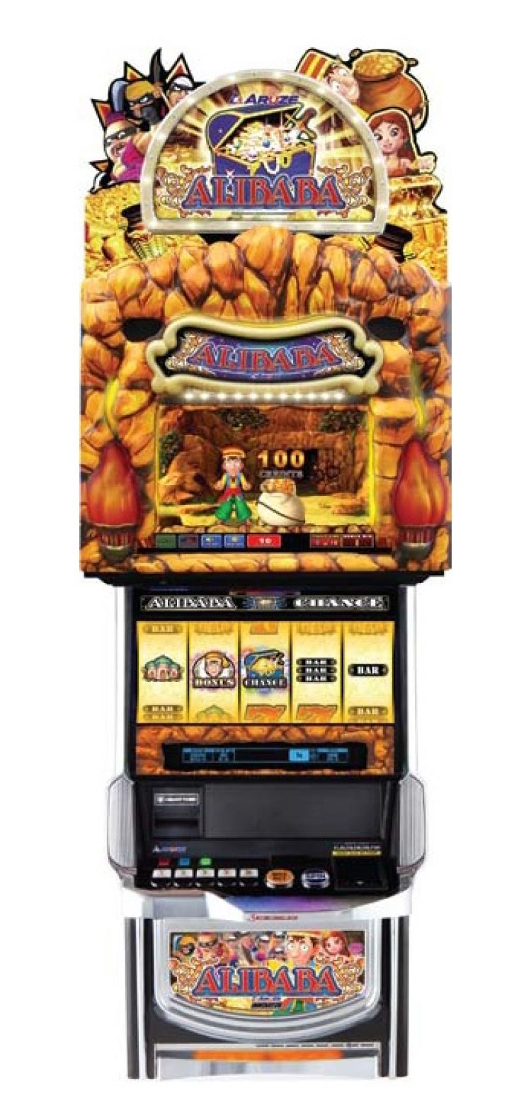 At every step of the game development process, Aruze seeks to imbue its products with fun, says the company’s vice president of marketing, Steve Walther. “You cannot go and see the Dancing Reels [a unique concept where the game reels appear to ‘dance’ by moving back and forth in synchronization with the background music] on the Catch the Money game without smiling. You cannot see Sancho Panza [on Knight of La Mancha] fall off the reel, spinning the reel while he’s falling, while still holding on to his meat on his bone that he’s been eating while he’s riding his horse behind Don Quixote, without smiling. So there’s all types of entertainment. The 40 thieves in Alibaba, they’re in a cartoonish way, and they all stack up and jump together out of the top box and land on the reels below, and the reels spin. It’s highly interactive—lots of entertainment, lots of fun.”