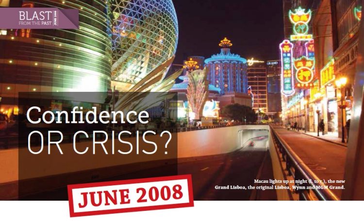 Confidence or crisis? Confidence in Macau readily arises from the amazing successes achieved to date. It is a tiny city-state that has quickly transformed from a sleepy backwater into a thriving entertainment center with billions being invested in magnificent resort developments. It has gaming revenues that continue to outstrip even the most bullish analyst estimates. Macau’s visitor numbers continue to surprise and astound observers.